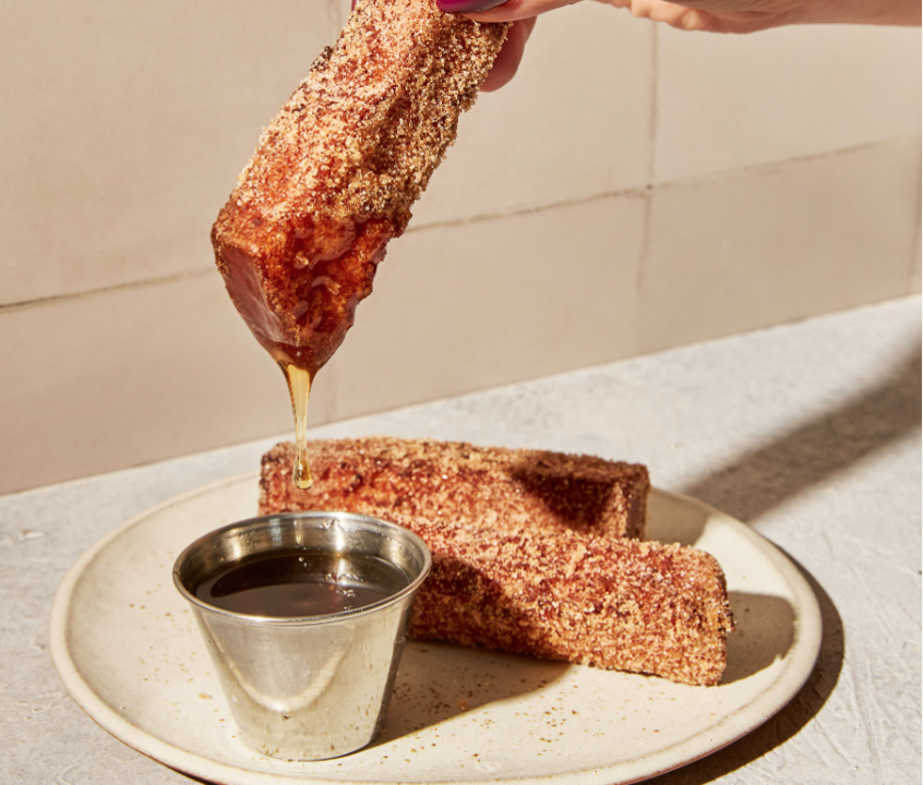 Set of three 24hr brioche sticks dipped in bread-pudding custard and dusted in cinnamon sugar. Served warm, made-to-order, with maple dipping sauce.