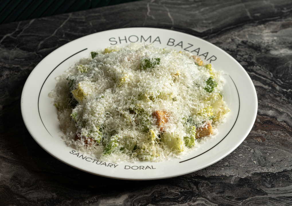 Romaine, croutons, parmesan cheese, Caesar dressing