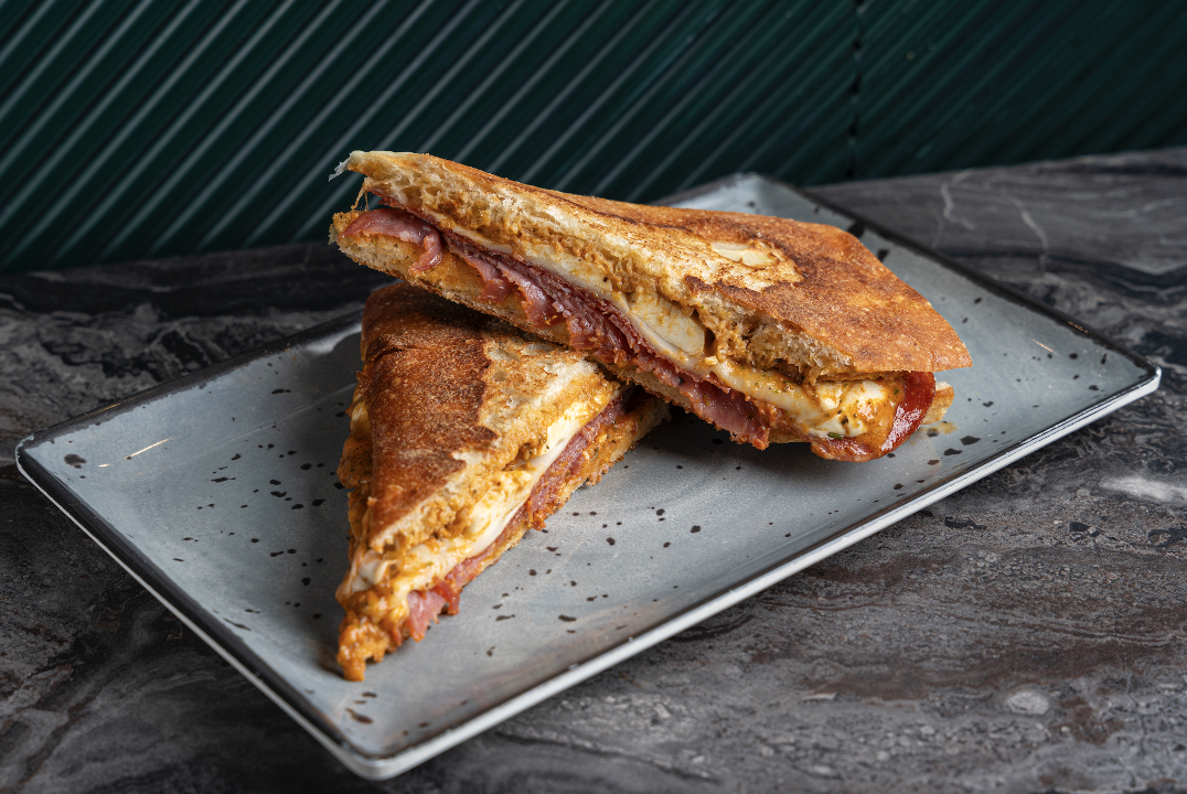Sliced pepperoni, salami, fresh mozzarella, provolone, housemaid Sicilian sauce with pesto (nut-free), pressed focaccia