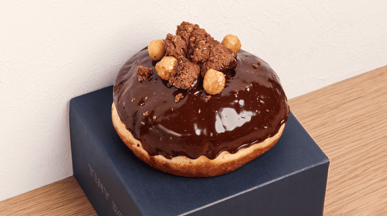 24 hr brioche, filled with whipped Nutella, chocolate ganache glaze & topped with candied hazelnuts + homemade crushed hazelnut cookies.