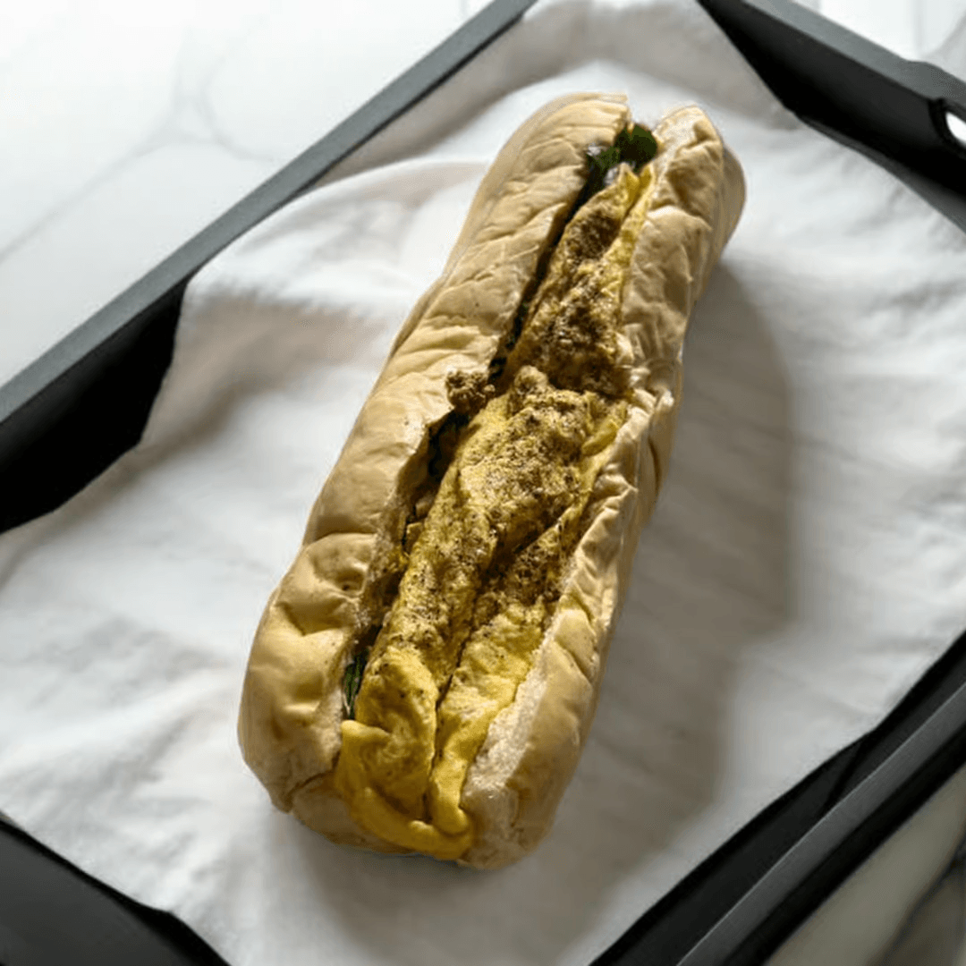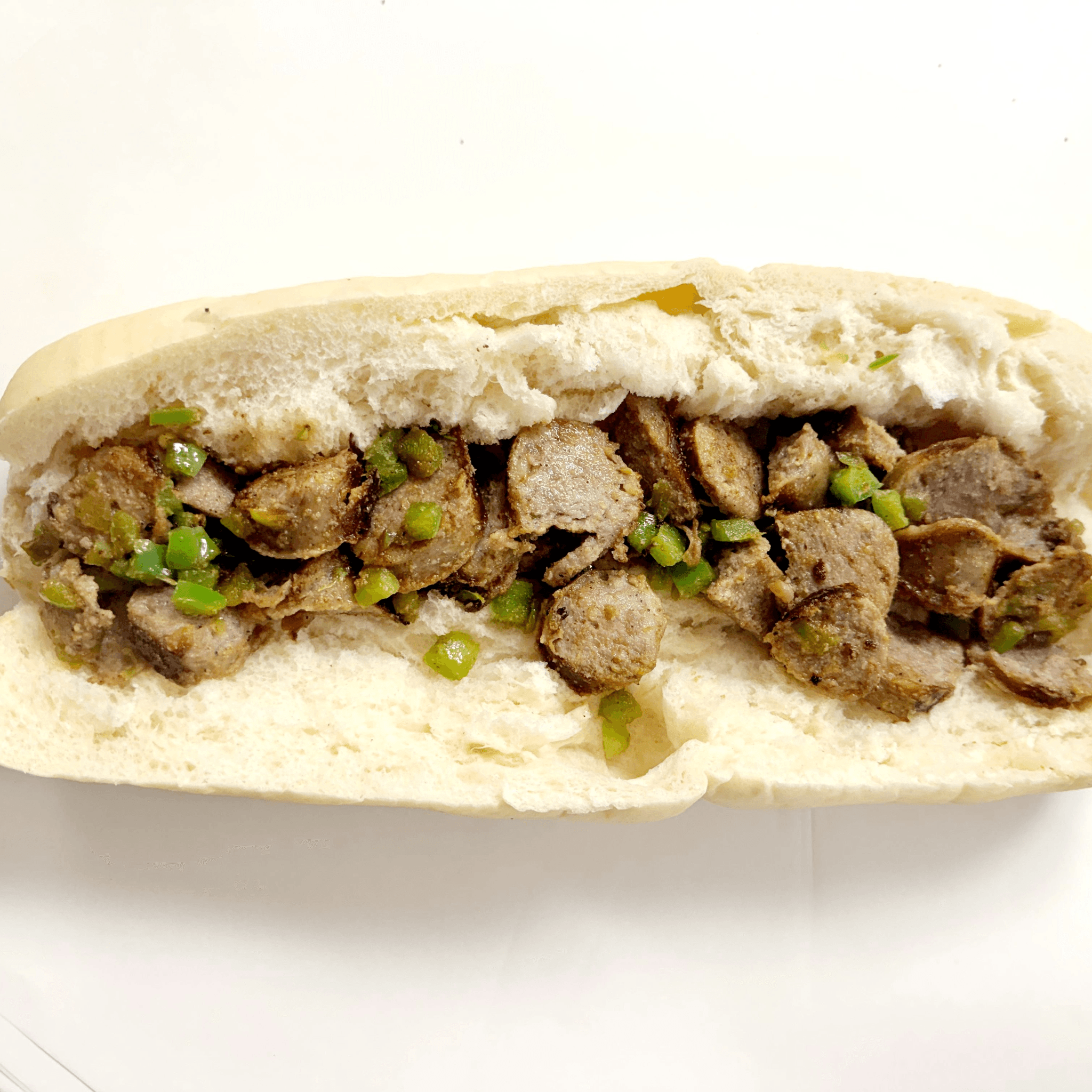 Italian sausage cooked on the grill with your selected ingredients with egg.