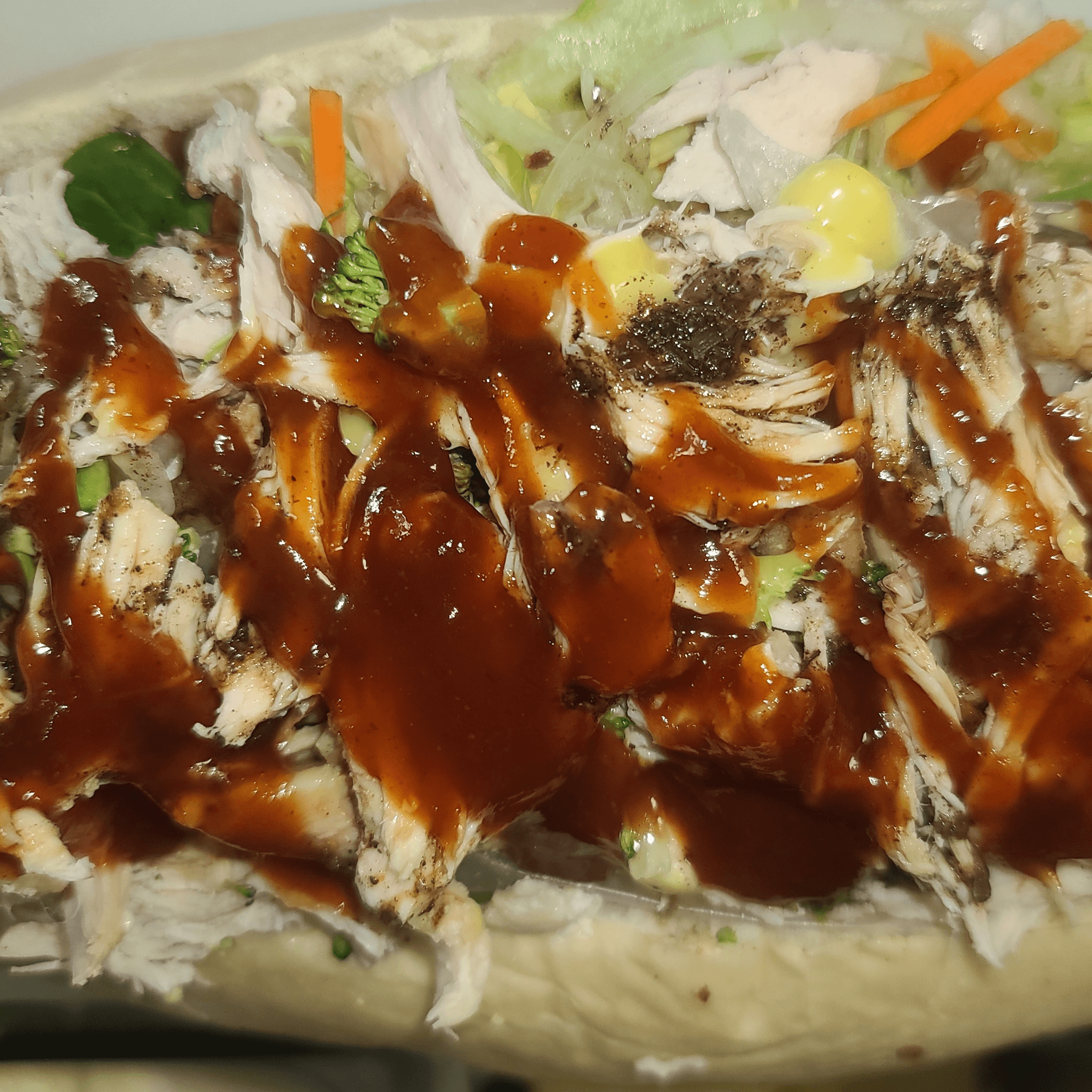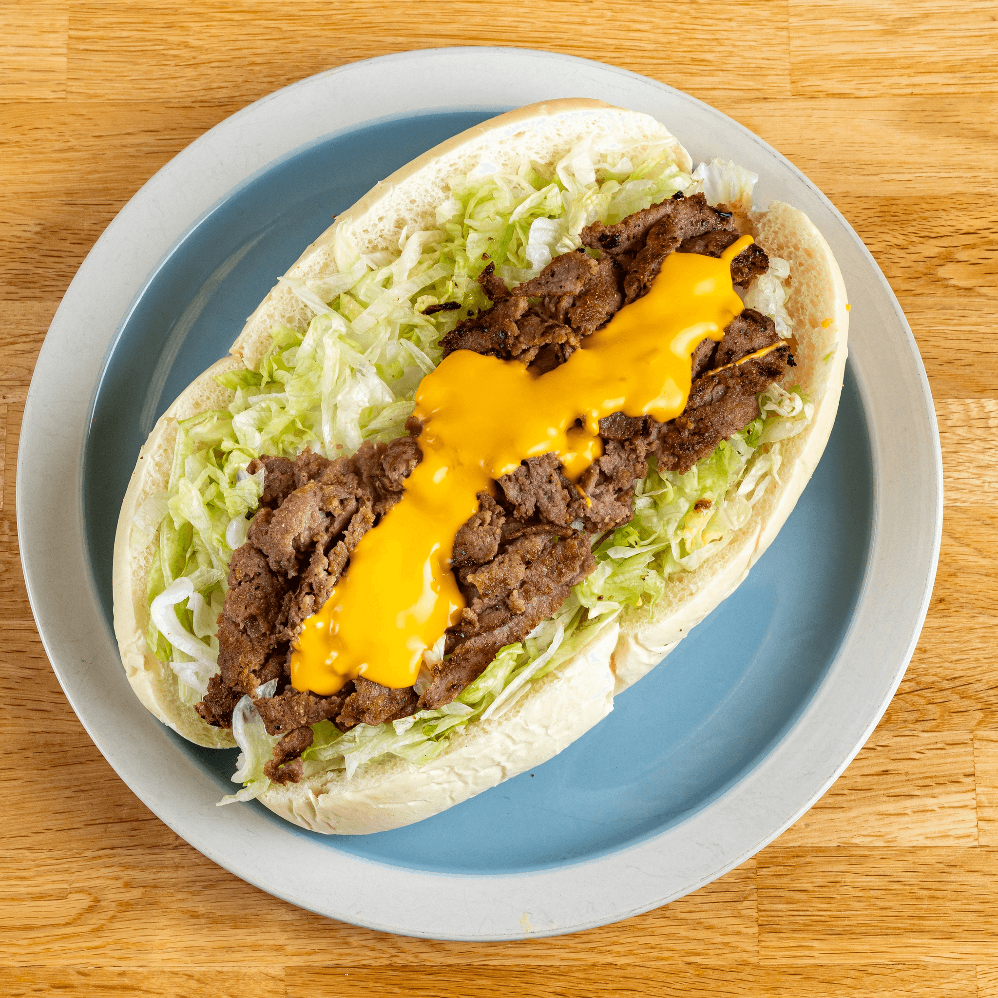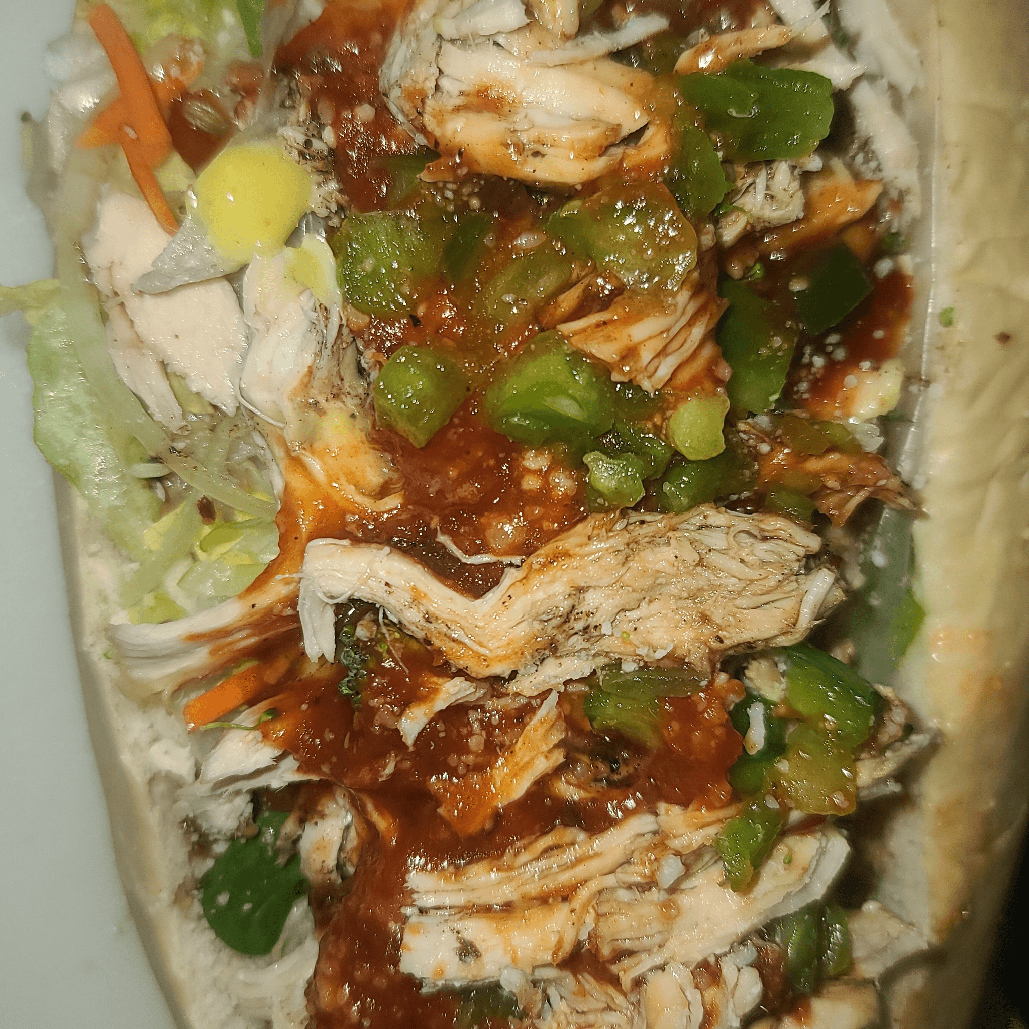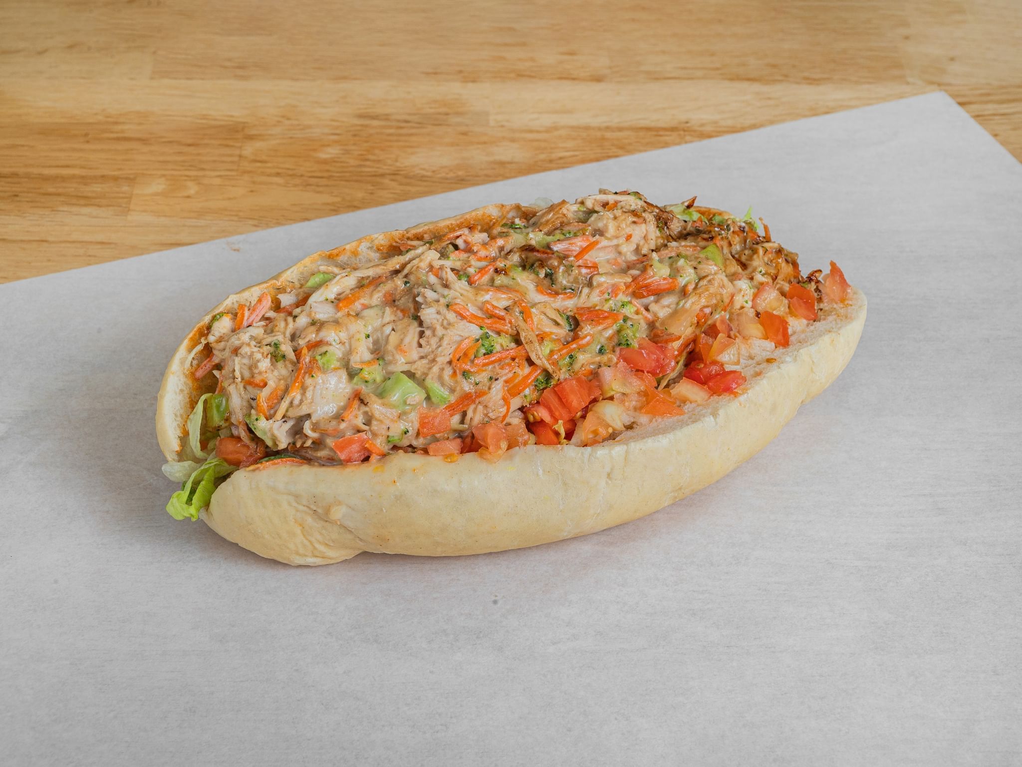 With lettuce, tomato, onions, pickles, jalapenos, white or yellow shredded cheese