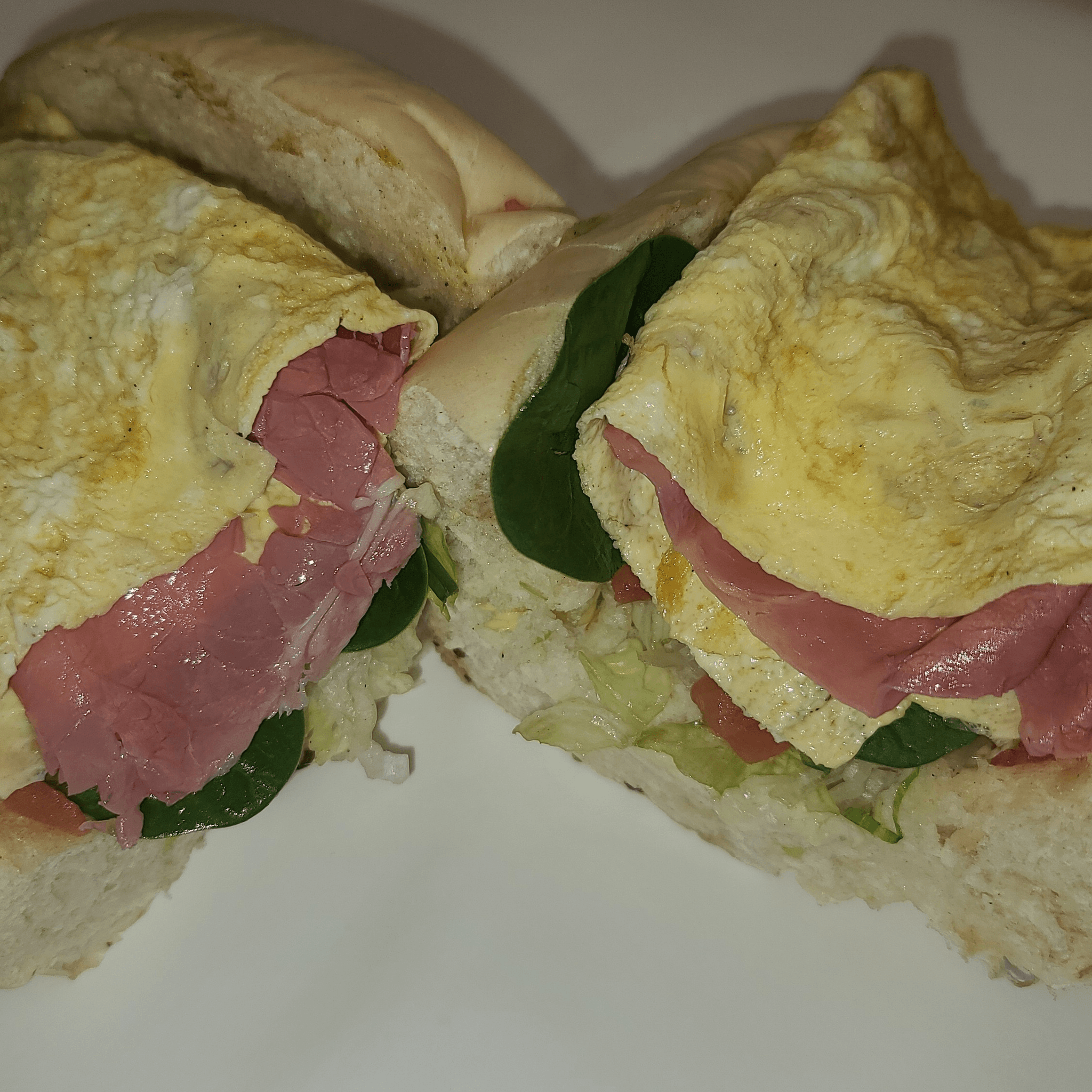 Ham cooked on the grill with egg. Choose your size.