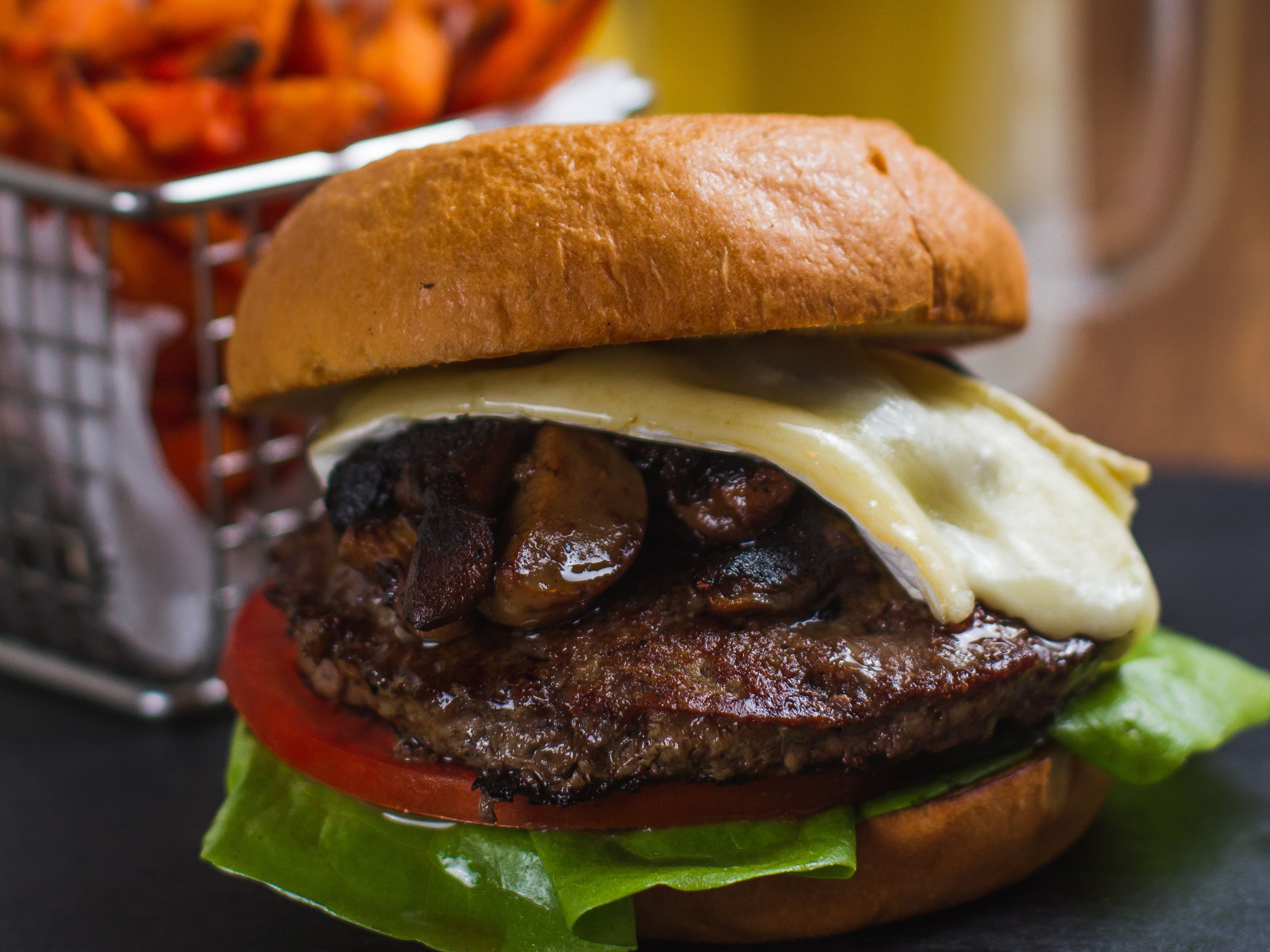 8oz. prime angus beef, porcini mushrooms, brie cheese, lettuce, tomatoes and a truffle aioli. Choice of regular or sweet potato fries.