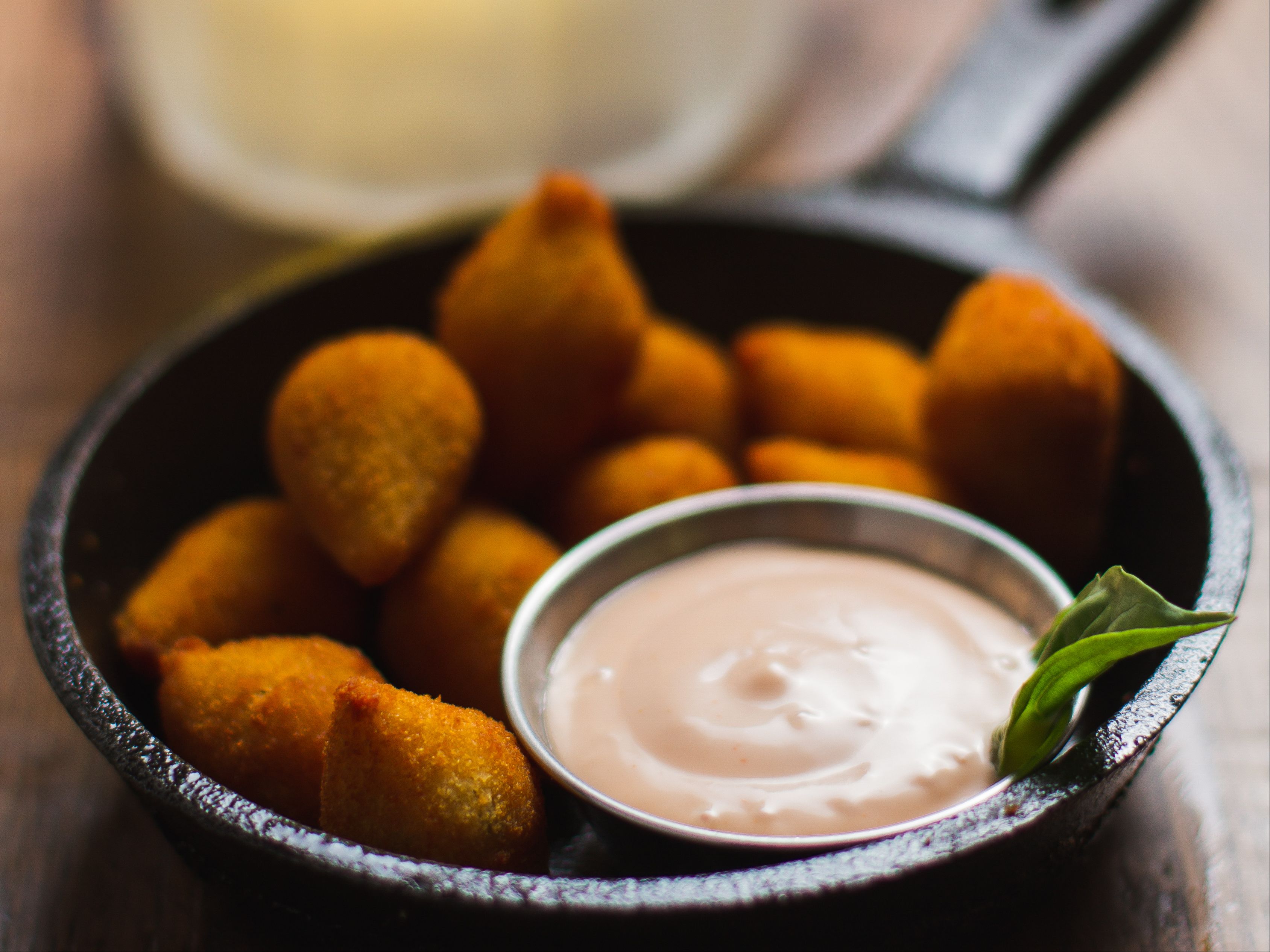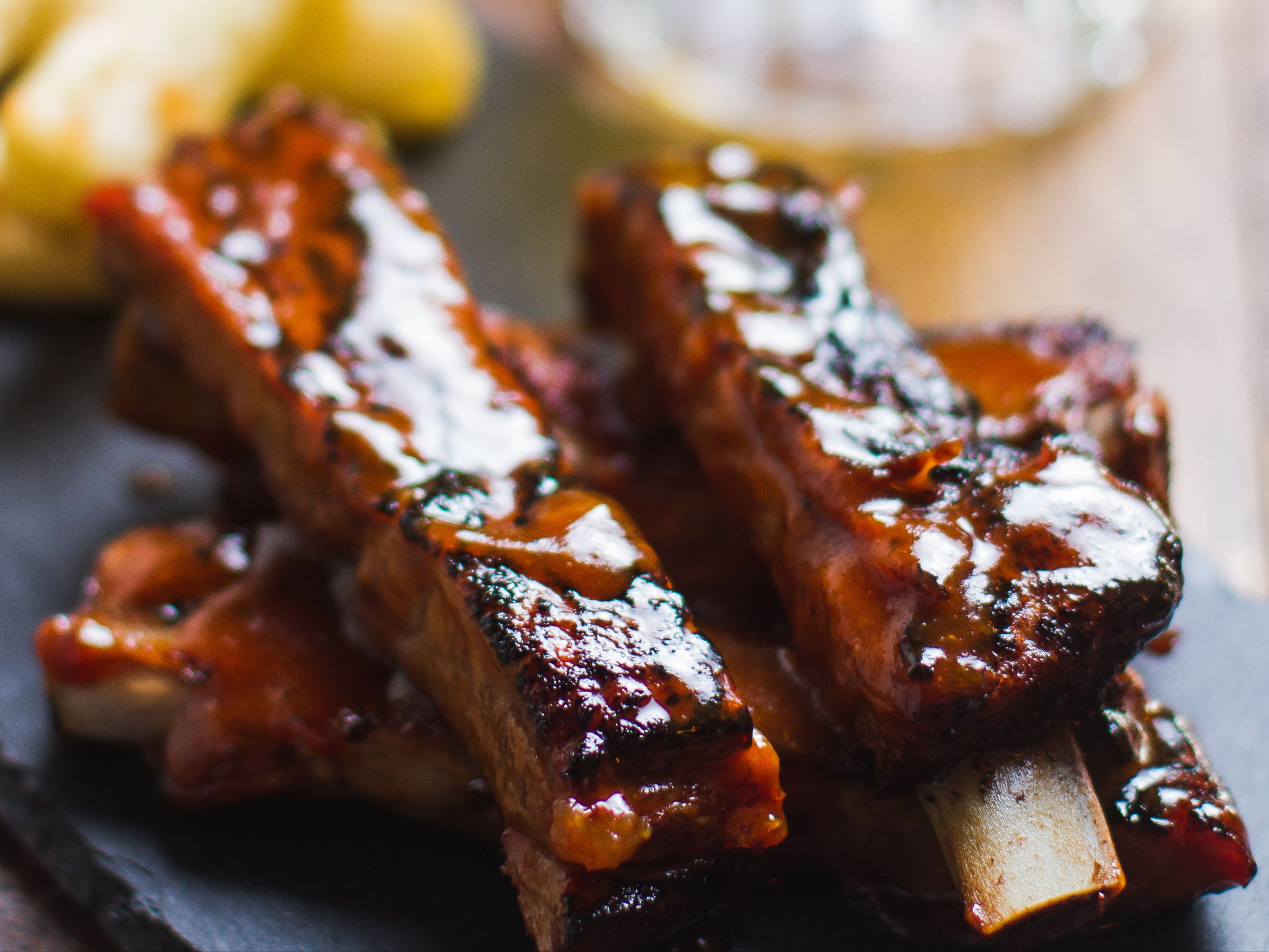 Chicken Wings in a guava BBQ sauce served with celery sticks and blue cheese