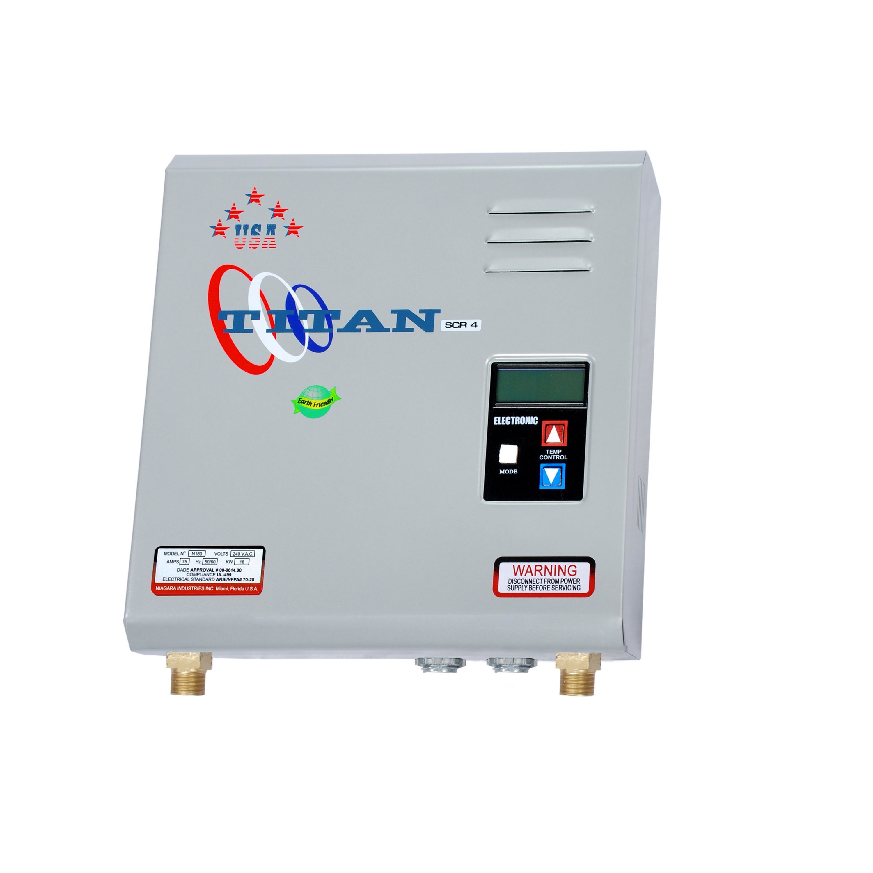 With more than two decades of great success and customer satisfaction with our Titan-ETH, Titan-ATC, Titan-SCR, and Titan-SCR2, we decided it was time to increase the Titan family of tankless water heaters. Many things have changed in the last 25 years; most notably, in the past most houses had a bathroom with a standard shower and a sink. Today many homeowners and builders are upgrading the bathrooms with new things like body sprayers and multiple showerheads. Also additions like whirlpool tubs have become standard in new constructions as opposed to an expensive remodeling a few years ago. That is the main reason for the need for a bigger capacity tankless water heater development, another reason for a bigger unit is the cold temperatures in northern states where a higher rise in temperature is needed to heat the water instantly. We spent a lot of time talking with our distributors, installers, and customers directly, getting their feedback of what they were looking for. After two years of development and testing, we are proud to say that have achieved a state of the art heater and the newest member of the Niagara Industries family the TITAN-SCR4. Available in three models, the new TITAN-SCR4 comes in 18 KW, and 21 KW; which is ideal for a wide range of applications including residential and some commercial applications. One TITAN-SCR4 unit can supply all the hot water needed and in some applications, energy savings can pay back the unit cost in one year. The TITAN-SCR4 tankless water heater comes with a 10 year warranty on all water carrying components and all other parts are guarantied for one year. Installation is quick and easy requiring no venting, and the TITAN-SCR4 compact size allows installation almost anywhere. The TITAN-SCR4 is without a doubt the tankless water heater of the future.