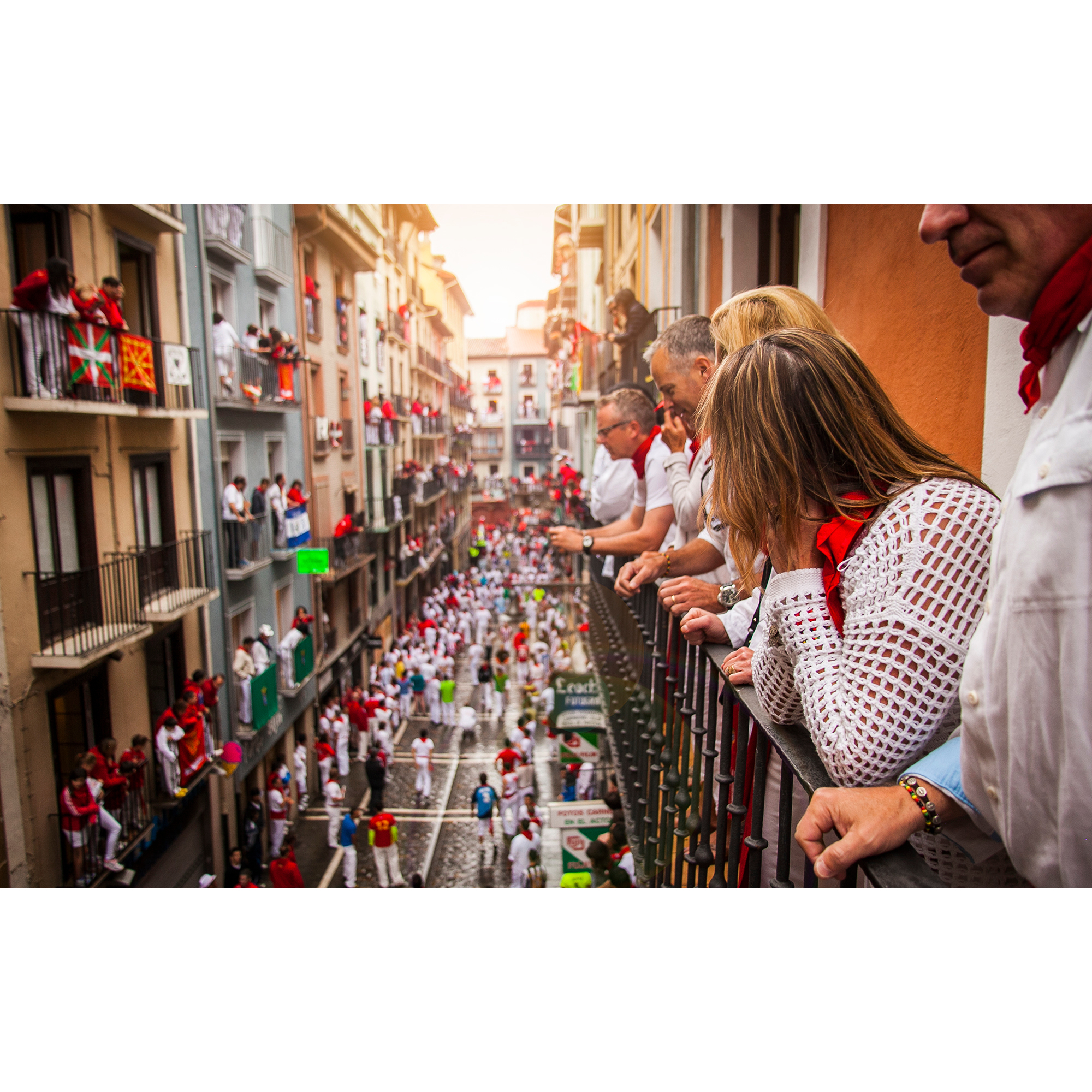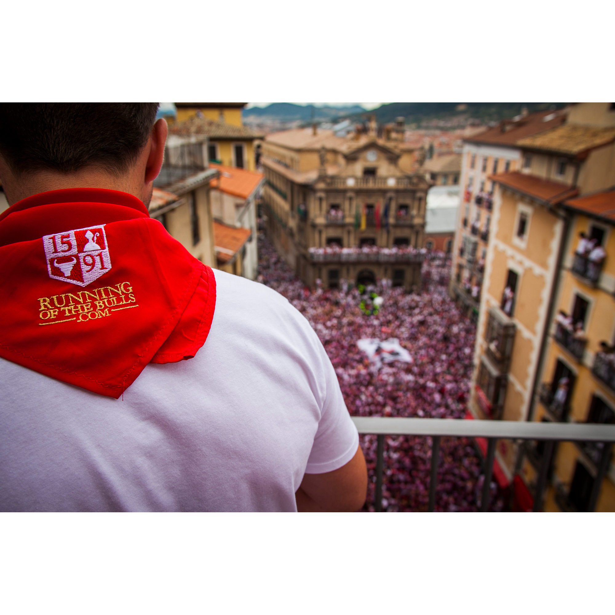Watch the raucous opening of the Running of the Bulls from the safety of a balcony above, while 10,000 Pamplonans party like its the end of the world.